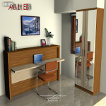 Untuk pintu Lemari Pakaiannya sendiri dibuat dengan sistem sliding agar tidak menyulitkan pemilik dan juga agar tidak menghabisi space yang ada di kamar tidur ketika pintu dibuka.